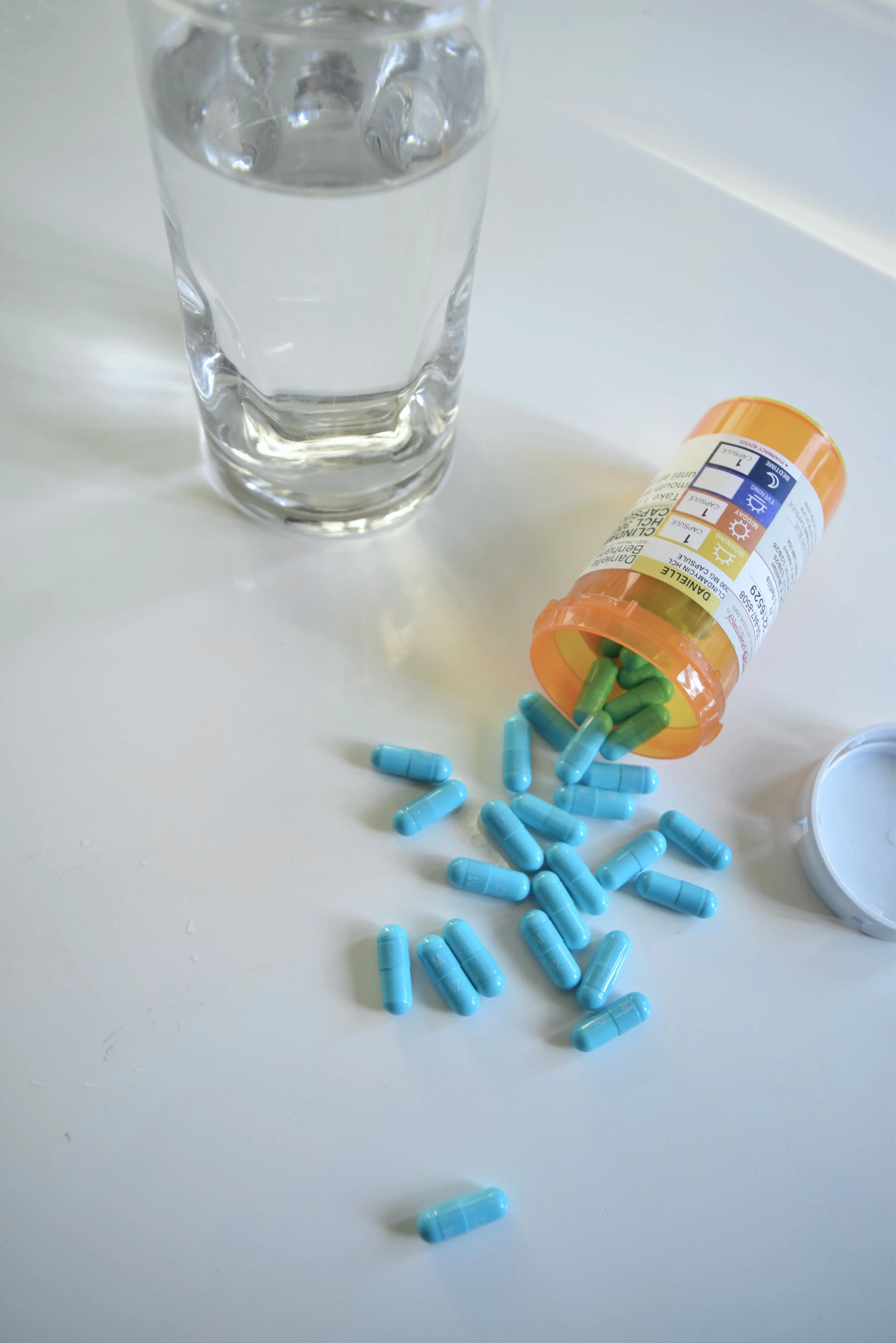 I took Clindamycin 300. I took 9 capsules of it over 3 days. I did not finish the entire prescription (47 capsules!)